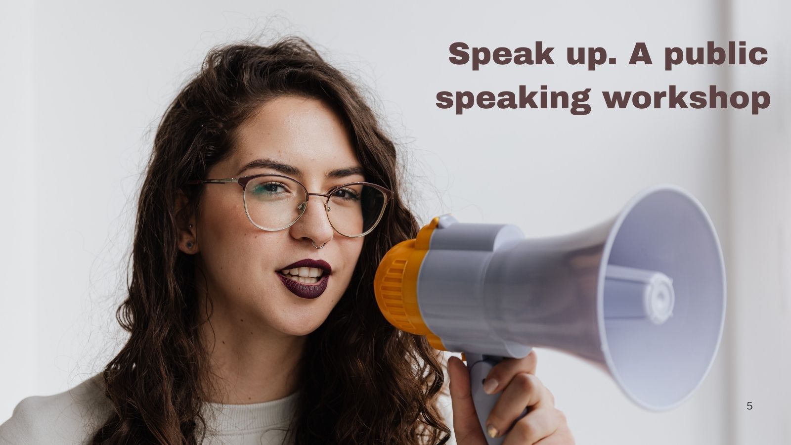 • Speak Up. A public speaking workshop