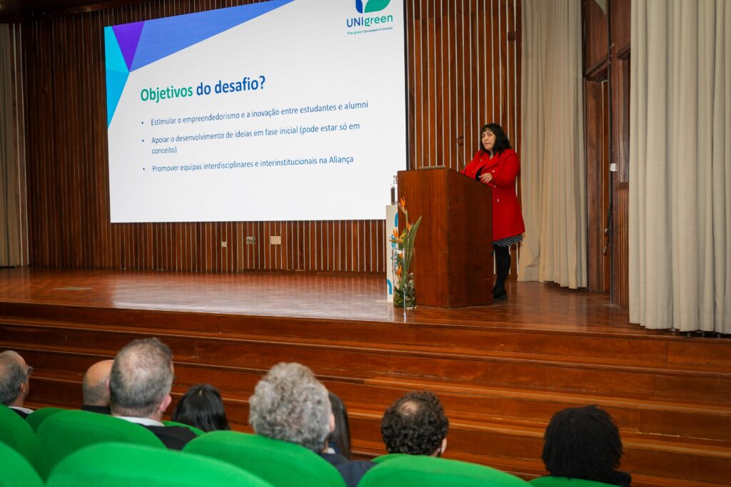 I2A director Carla Henriques presented the challenge, which aims to stimulate entrepreneurship and innovation among students and alumni, support the development of ideas in their early stages and promote interdisciplinary and inter-institutional teams within the Alliance. Students from any UNIgreen partner and graduates who graduated less than a year ago can participate in teams of 1 to 6 members in various eligible areas. Applications can be submitted until the 5th of June, and the final selection will take place on June 22nd. At the local level, each institution will submit up to 2 projects.